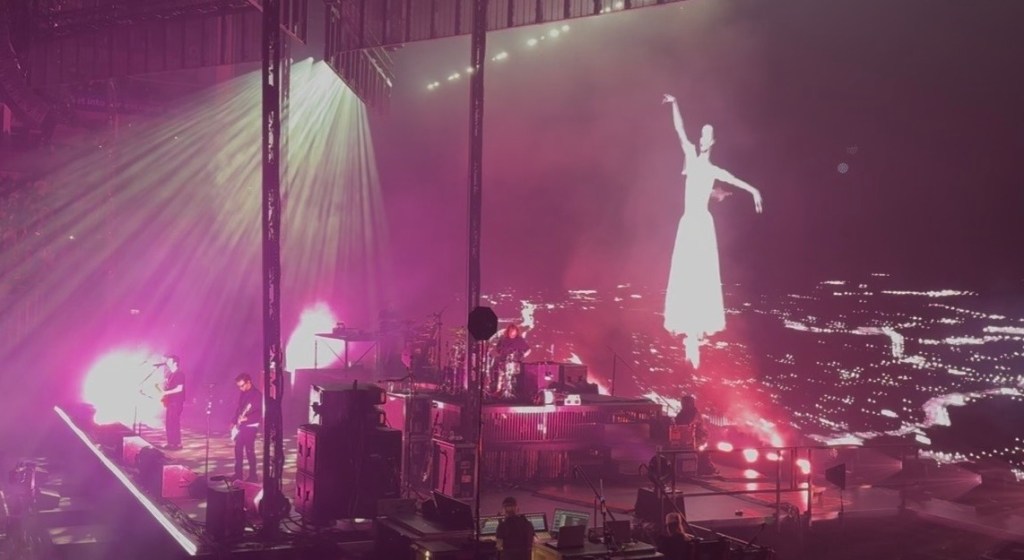 One of the most striking visual moments of the evening came during “Digital Bath.” On the screen behind the band, a lone ballerina rotated – poised, suspended, almost weightless. The image felt deliberately incongruous against the distorted guitars and submerged basslines. Yet it made perfect sense. That contrast, fragility framed by heaviness, is central to Deftones’ appeal.